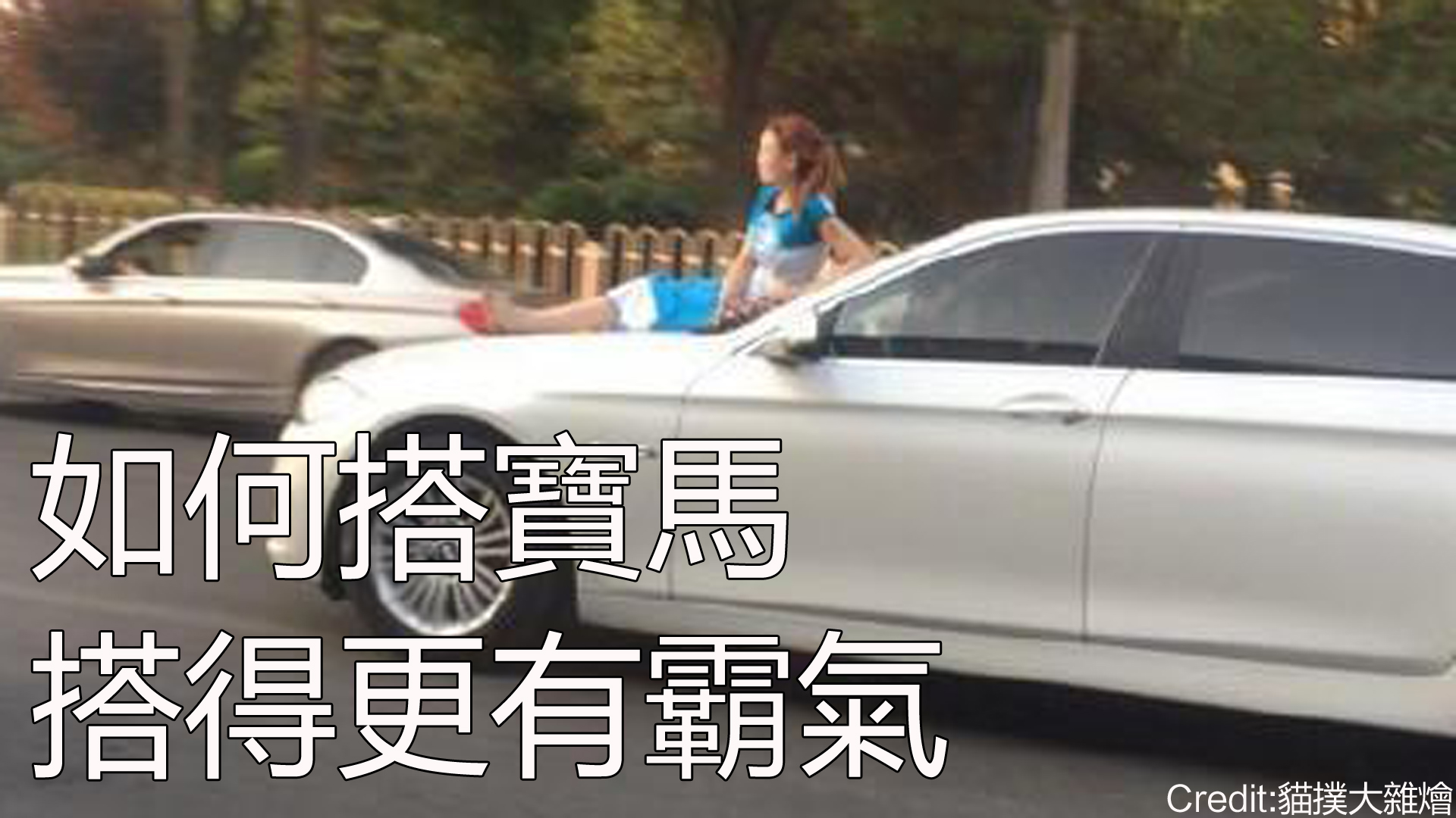 當時呢一架BMW行駛緊,車速仲要唔低㖭!而呢位阿姐就穩如泰山咁坐喺架車上,郁都唔郁,似係有習過武呀(似咋)!