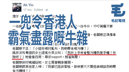 呢個阿姐因為兜邊有牛雜汁而發老闆娘爛渣,不過最後畀人拋返轉頭。