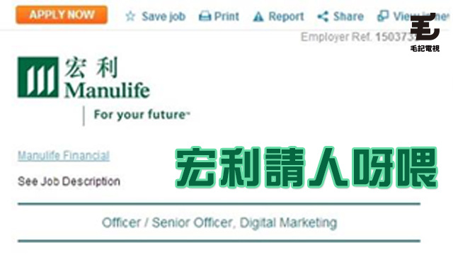 噚日呢張「宏利$500英雄帖」流出之後,今日有讀者就喺JobsDB度發現咗宏利一個最新嘅請人post,係請Digital Marketing呀!