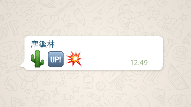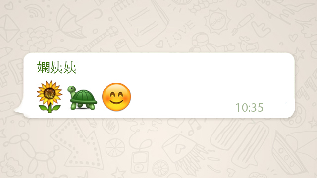 政改表決當日嘅建制派智將WhatsApp對話流出,工聯會嫻姨姨所用嘅太陽花、笑臉同烏龜emoji,引嚟唔少人猜測背後係咪有咩神秘咪咪。喺電話度一字一句寫得咁清楚,講錯嘢水洗都唔清,毛孩根據佢哋嘅對話,諗咗幾款emoji,等智將們進可攻退可守。