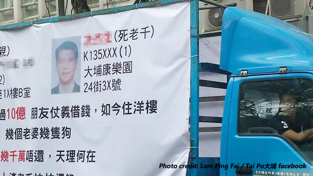 有位大埔巴打見到有人喺街度用宣傳車嚟追人還錢,真係好揼本呀!