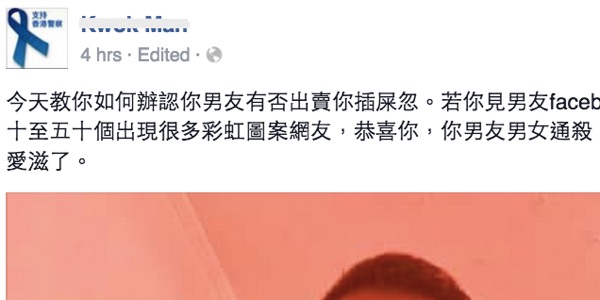 有位親愛嘅藍絲朋友同大家分享菊花心得:「教你如何辦認你男友有否出賣你插屎忽」。