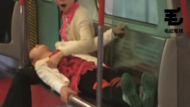 搭地鐵等班車已經等咗好耐,等到好攰嘛,入到車廂有位梗係要瞓低,兩腳一伸直咁嚟瞓,唞返吓先得啦。