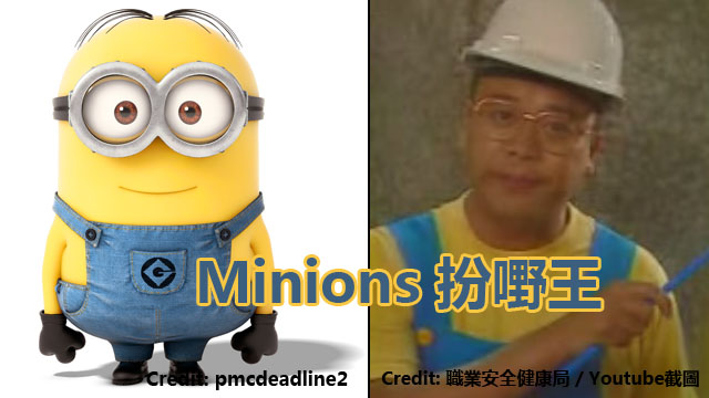 最近隻很黃(但非暴力)嘅Minions很紅,個個都爭住要去同佢影相或者cosplay扮嚟影相。不過,讀者Stephanie Hung發現原來一早喺1999年,歐陽波比已經率先帶領潮流,喺「職業安全健康局」嘅廣告(影片連結)裡面著晒成套戲服,扮保背博士Minions喇!