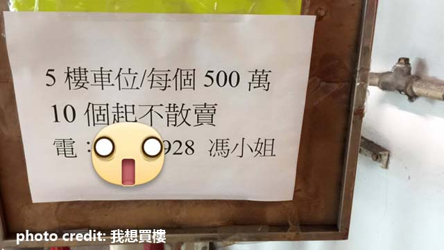 有網友貼咗張車位廣告相,今次平啲啦yeah!500萬咋!差唔多平成半喎!抵買!