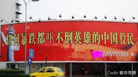 跌L晒,唉,唔L驚,因為強國股市不再強,搞到香港今日個市又唔知跌咗幾多點,IFC條人龍又唔知排到去邊。我地偉大嘅祖國就整咗個宣傳叫大家唔駛驚,因為大家都係英雄的中國人(應該包埋香港)。