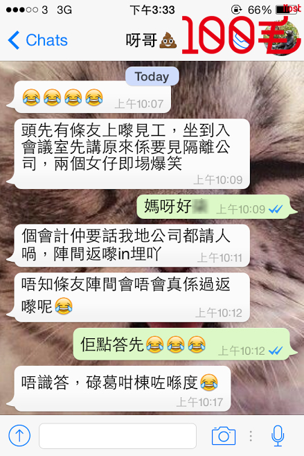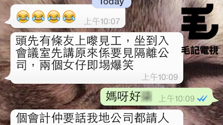 今朝有位人兄去見工,唔知係唔係因為太緊張,入錯咗隔離公司仲要坐埋入會議室先發覺。之後,毛毛都唔敢睇落去...... 聽講,呢個人以後都冇再返過嚟喇。 年輕人,你唔使驚,毛毛同你講,你返去youtube搵家姐妍條片睇幾次,你就會覺得經歷幾多都係可以面對㗎喇。
