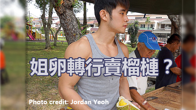 哦,原來唔係姐卵嚟嘅。呢位酷似姐卵嘅靚仔叫Jordan Yeoh呀!最近幫叔叔手喺街頭擺檔賣榴槤,畀網民封咗佢做「榴槤王子」呀!