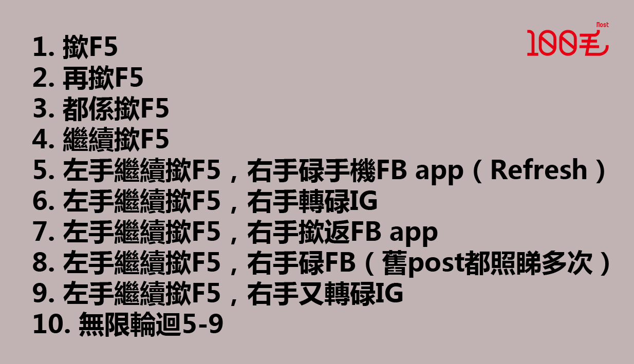 點解淨係撳F5?你人生都係得Facebook㗎咋嘛,唔F5捕獲佢重生嘅第一刻,你仲有咩好做吖?