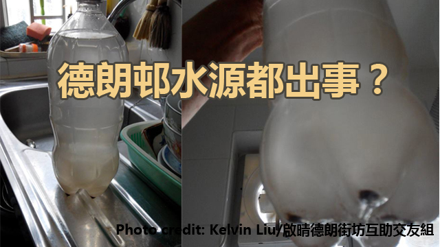 同啟晴邨一樣座落喺啟德嘅德朗邨,噚晚有居民喺凌晨兩點開水喉嘅時候發現啲水質混濁,仲充滿泥沙。