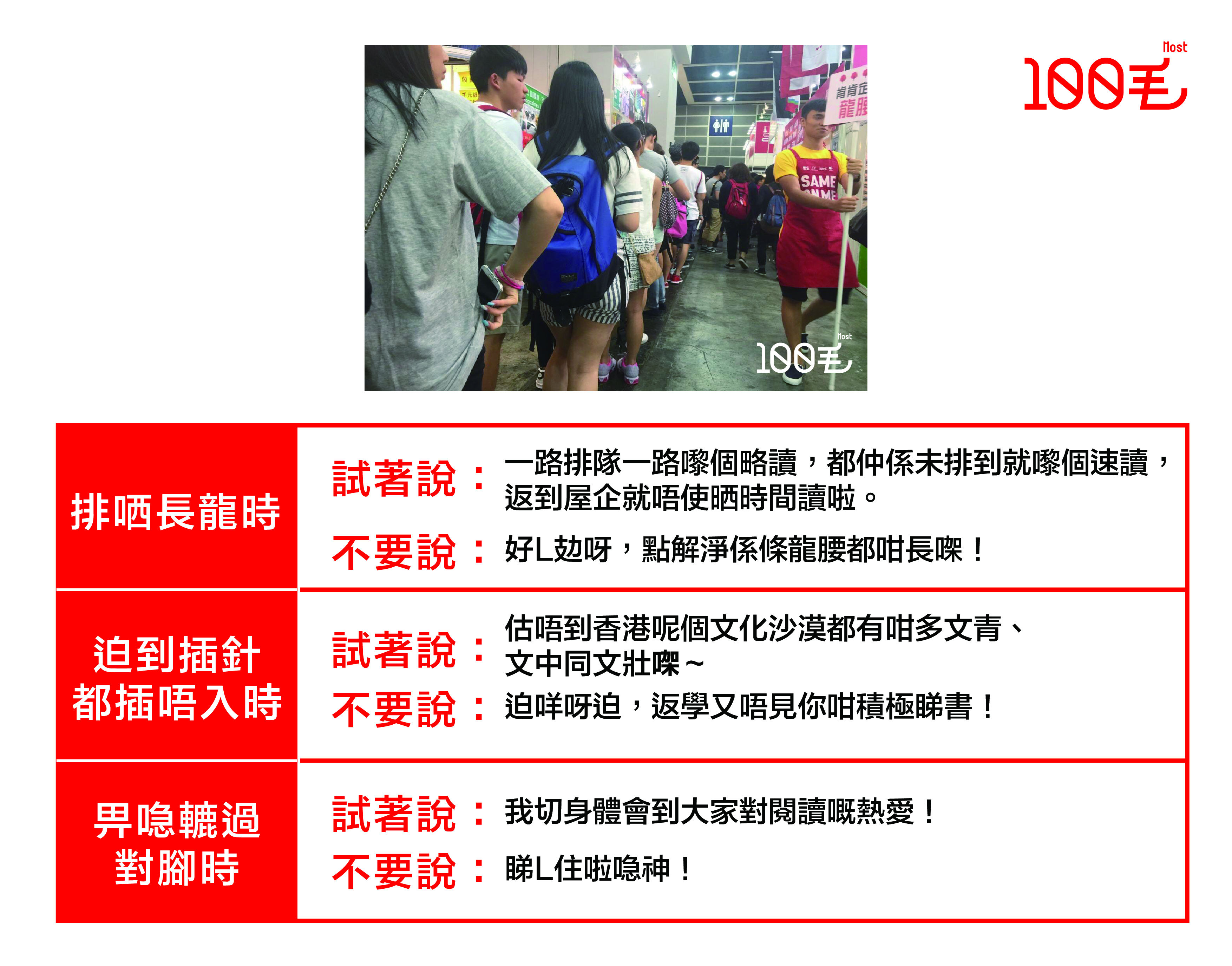 書展係一年一度畀你哋班(偽)文青吸收同顯示自己文化氣息嘅時間,梗係要留返個小清新回憶,唔好畀啲小事影響你嘅打書釘興致。