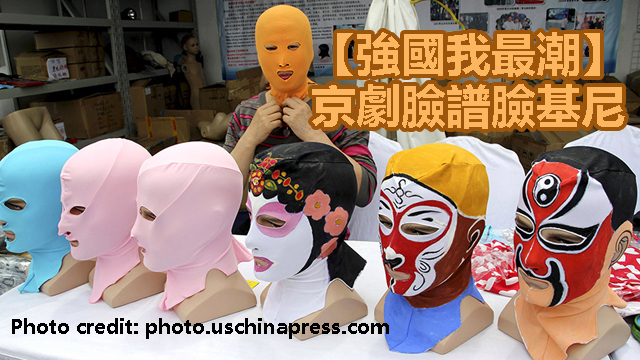 但有人話呢種面罩睇落好似殭屍,會嚇到細路面都青埋,於是發明者張式范就諗到,將傳統京劇臉譜揉合時尚單品臉基尼,推出京劇臉譜臉基尼,帶領強國新風尚!