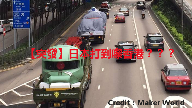 前排強國就發現日本已經成功研發咗高達出嚟,今日就竟然有人發現有疑似軍車運載高達同埋揸古喺香港嘅鬧市出現。