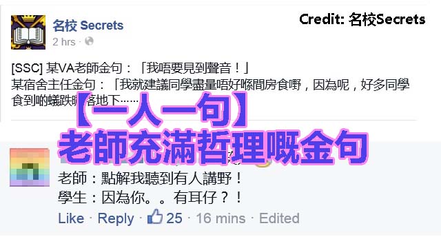 金句呢家嘢,唔係淨係得黎天王或者一班建制智將先識講,其實你學校個miss時阿蛇先係最有哲理嘅金句王!喺「名校Secrets」呢個Facebook就有啲勤奮好學嘅同學仔,上堂mark筆記連老師講過啲咩都mark低晒,仲同大家分享: