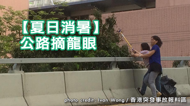 今朝有位網友喺旺角聯運街見到有兩個大媽摘龍眼,雖然喺路邊摘水果係方便,但真係極危險喎!