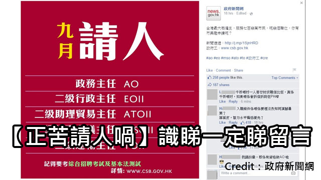 正苦出post請人,唔知個admin係瞓著咗定舉白旗,定係負皮多到剷都剷唔晒,竟然成個post放喺度任人狂插。 可能admin剷留言剷到崩潰半路唔撈,結果呢個post啲留言仲精彩過城市論壇。 不過毛毛都係最鍾意呢個神回,睇嚟上帝已經創造唔到一條阿茂萬能key不能應用嘅問題喇~ 來源:政府新聞網