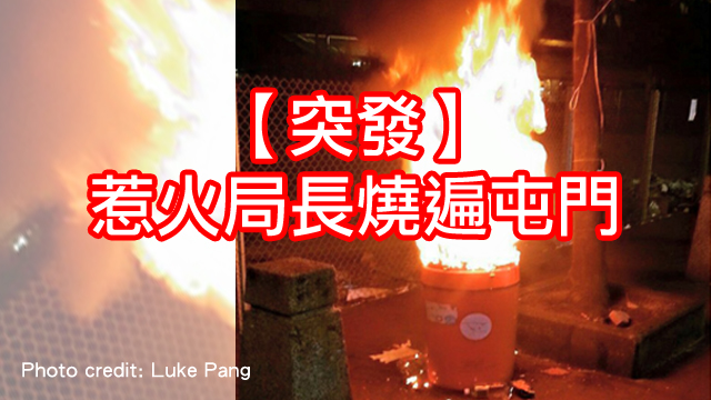 喺屯門啟發徑近屯門市廣場入口嘅位置,有疑似局長嘅物體突然著火。