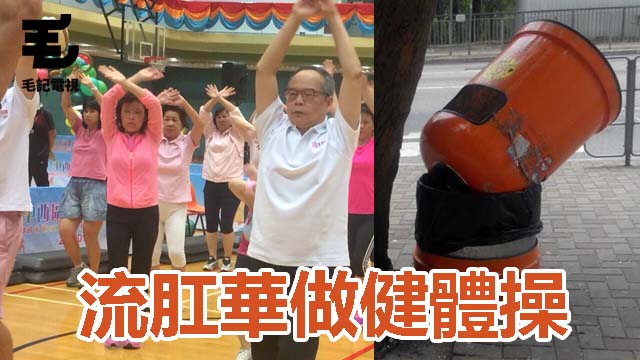 流局長一身黑白配裝束,同大家一齊跟住教練郁身郁勢,延伸吓手臂又壓吓腿咁。