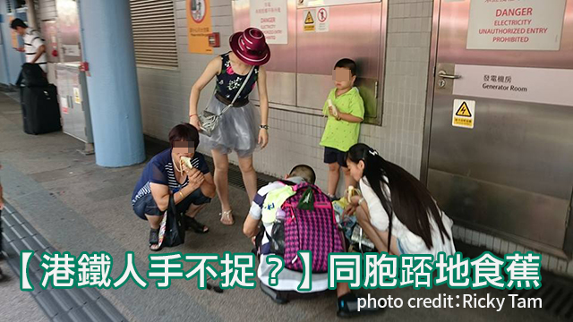 有網友影到同胞喺九龍塘月台,圍埋一齊踎喺地下開餐嘅歡樂時光,一人一隻蕉,好溫馨。天氣咁熱,唔知有冇劈埋個西瓜嚟食下?呢?