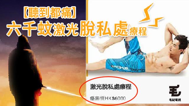 脫私處已經聽到都驚,仲要用激光脫?係唔係用Star War嗰把激光脫呀,仲要優惠價六千蚊,吓,脫完你畀返六千我呀? 哦,我明喇,呢間其實係男士找數公司嚟嘅,佢哋一定係好貼心咁想為啲爭落周街丁數又終於肯找嘅真漢子供服務啫。 如果係咁,大家就要學燦神咁,要脫就脫得足啲喇!