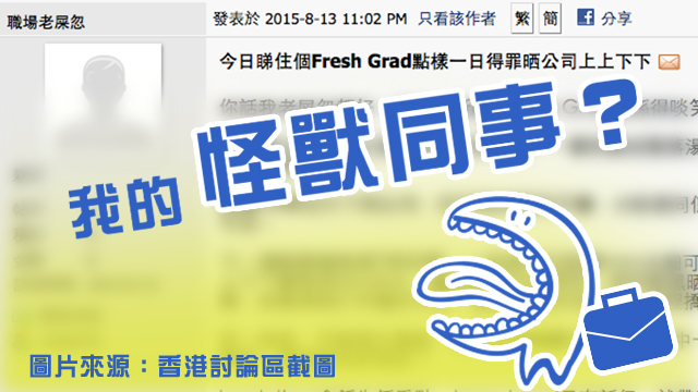 噚晚有個叫職場老屎忽嘅網民喺討論區度開咗一個叫做「今日睇住個Fresh Grad點樣一日得罪晒公司上上下下」嘅post,講話佢公司嚟咗個新仔,然後大數呢條新仔嘅罪狀。