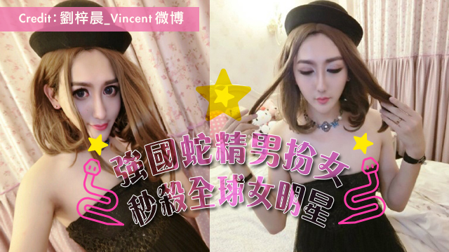 美圖瘦獸男子組代表蛇精男之前豪使幾十萬一整再整,噚日再Post咗一系列扮女裝嘅自拍!睇嚟淨係秒殺全球男明星已經滿足唔到佢,連女明星都話要秒殺埋,相信好多女明星見到佢嘅相都會自卑到唔敢再照鏡......