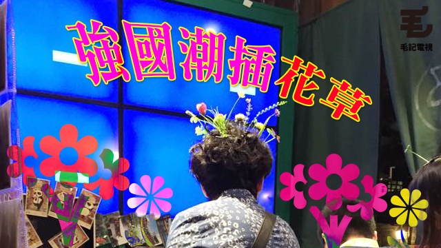 根據PO Sin所講,呢種裝扮隨街都見到,男女老幼都係咁樣打扮,將啲花花草草一棵二棵咁插晒喺自己個頭嗰度。你睇呢個大媽,妸娜多姿,幾咁誘人呀!
