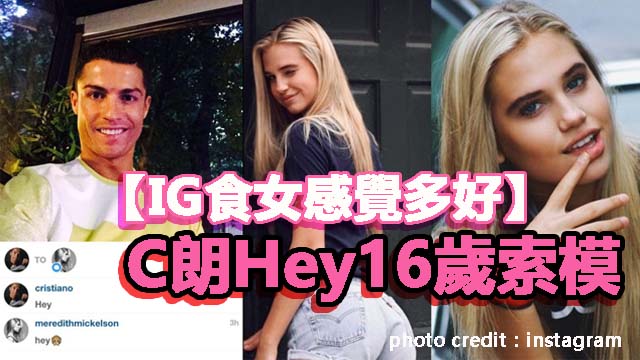 睇嚟IG食女係天下間每個男人都會犯嘅錯誤啵,同一個故事,竟然發生喺型男C朗身上。佢都一樣,用挨豬direct同索模Meredith Mickleson搭嗲,講咗句「Hey」,仲畀索模post埋出嚟,下場咪又係畀人當花生囉,但係毛毛今日諗住再食多次花生嗰陣,個post已經del咗喇。