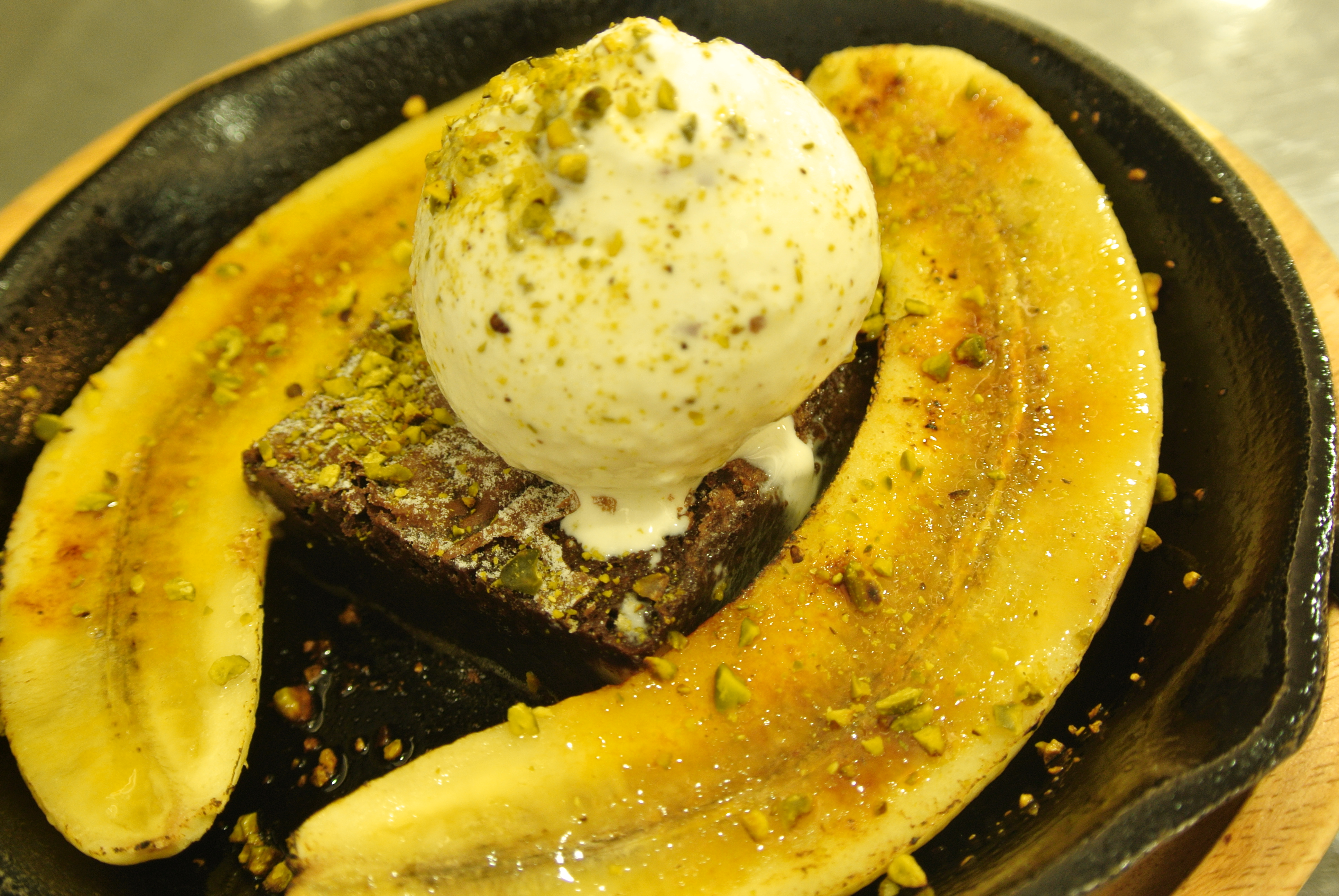 咁到底點樣鐵板燒法呢?店員會畀杯朱古力醬你,趁熱倒落去個Brownies度就會做到好似鐵板燒嘅效果咁有Jar Jar聲㗎啦!