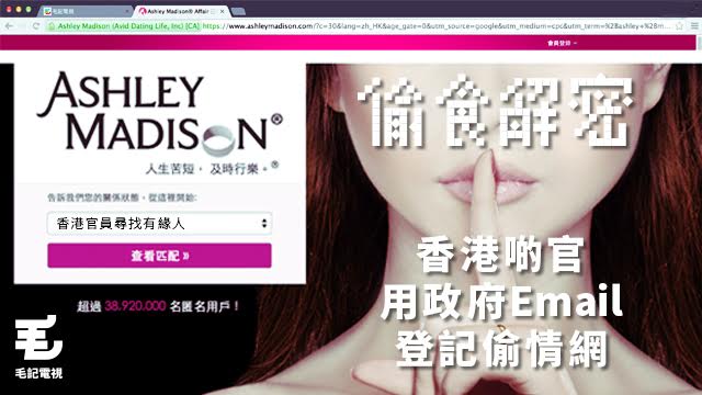 國際婚外情約會配對網站Ashley Madison乜乜乜畀黑客入侵, 有成萬個AC畀人起咗底呀!入面仲有成九個政府部門嘅email AC,哇乜而家香港啲官玩得咁刺激呀,偷情都用政府email登記?!