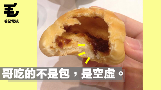 讀者Horings Ng今日去飲茶,叫咗個叉燒餐包吃,點知咬開,空氣包嚟嘅喂! 毛毛成日覺得呢啲神奇空氣包仲難整過有餡嘅,你睇已經冇餡㗎啦,個皮仲要紙咁薄都可以成到型,真係好考功夫,少啲技巧都唔得㗎。 其實毛毛睇電視睇到食叉燒包有陰影,不過呢個吞咗都冇感覺,包你唔會食叉燒包哽死。