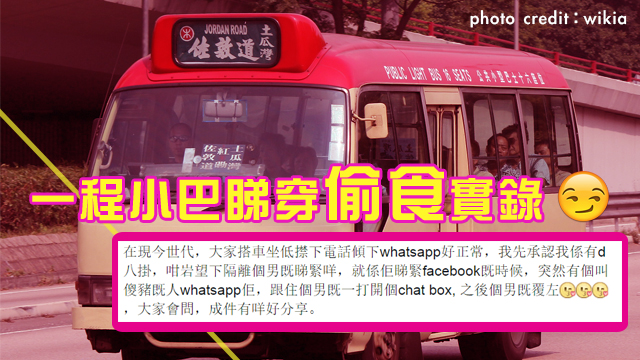 子華神都話過,若要人不知,唔好太低B。你以為偷食真係會完全冇人知咩?其實你身邊已經有對眼望住你。毛毛個FD子就喺搭小巴嘅時候,見到個賤男偷食,用短短10分鐘,睇穿咗一個人。