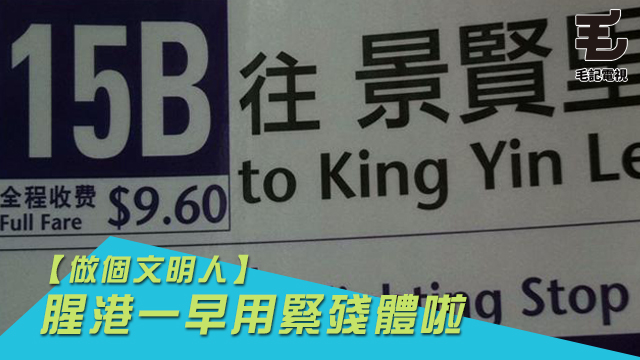 呢個巴士站牌就唔夠光磊明落、明張目膽喇,淨係偷偷地咁喺收費地方轉用殘體。不過我都明嘅,改變係要一步一步嚟,先由細微嘅地方入手,讓一部份字殘起來呀嘛,成個牌,最重要嘅資訊就梗係車費啦,唔通係目的地咩?「全程收費」先行一步轉殘體,絕對合情合理呀!
