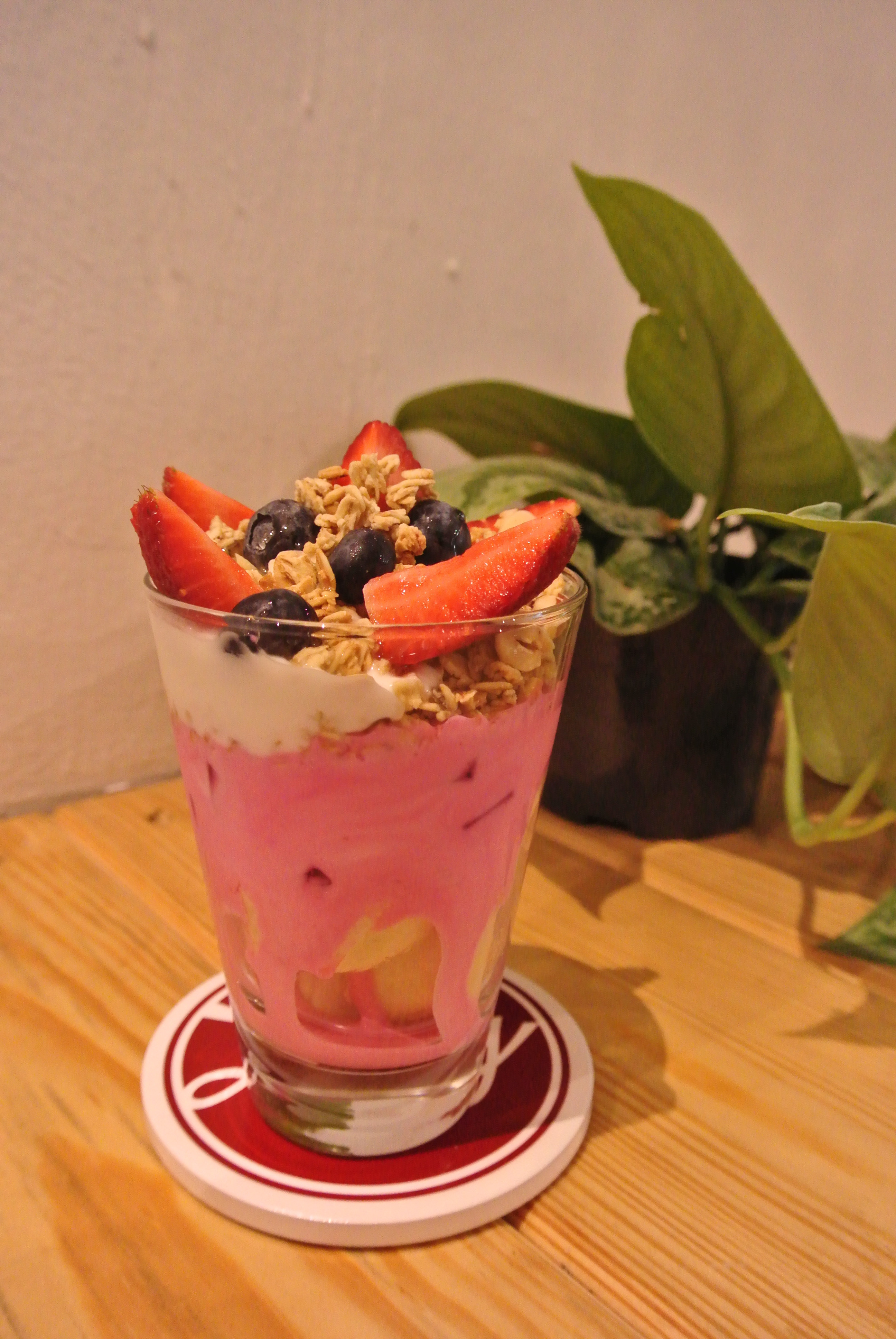 其實杯乳酪粉紅色嘅原因係因為用咗紅菜頭嚟做。紅菜頭有好多好處,好似減肥啦、減肥啦、同埋減肥啦,呀,仲有降血壓嘅。而且呢杯乳酪仲用咗其他生果,加埋果仁脆一齊整,全部都係又有益又健康,毛毛豬食完都即刻覺得自己靚咗fresh咗呀!
