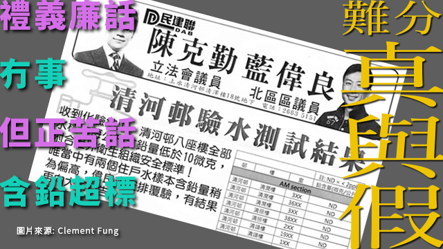 正苦話上水清河邨第一期有十個樣本含鉛量超標。之後話咁快就有禮義廉fans(好似係)係網上post咗張禮義廉嘅單張: