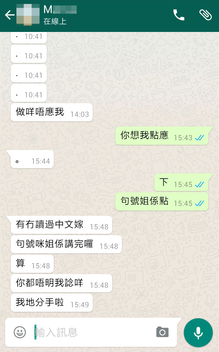 聽講每7秒鐘,就有一個港男畀港女飛,啱啱又有一個喇!有網民公開自己畀女飛嘅慘痛過程,而原因竟然係睇唔明女朋友個句號代表咩?到底呢個港女狂send一點點即係點呢?媽,好亂呀!