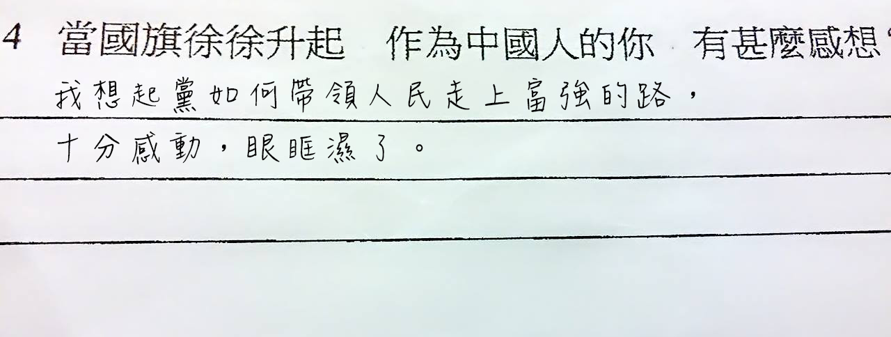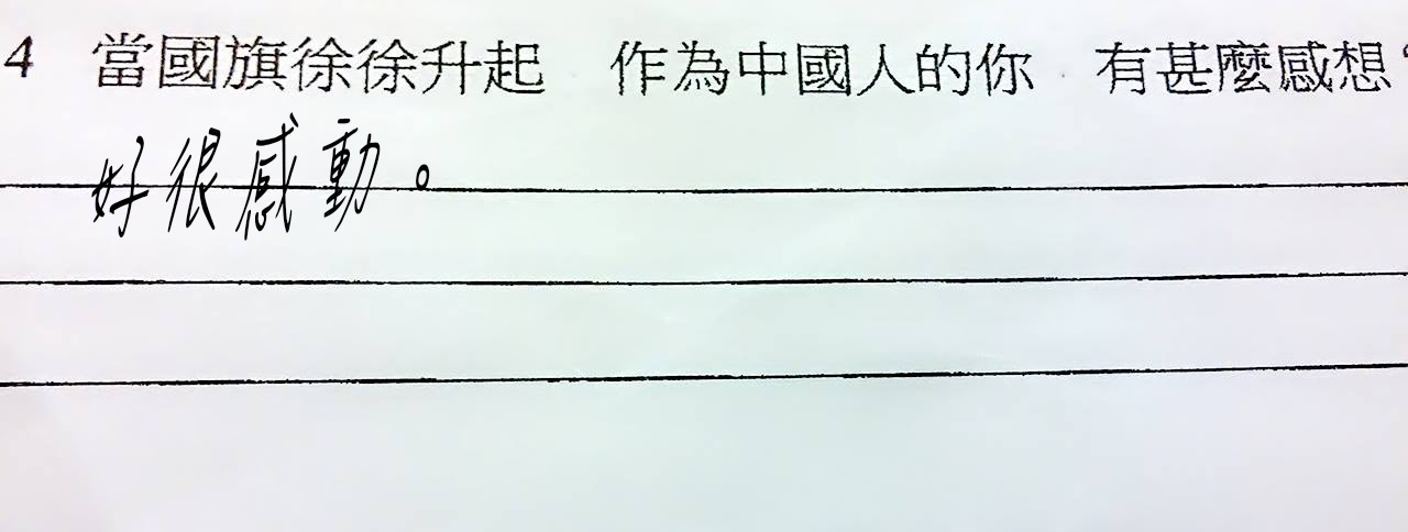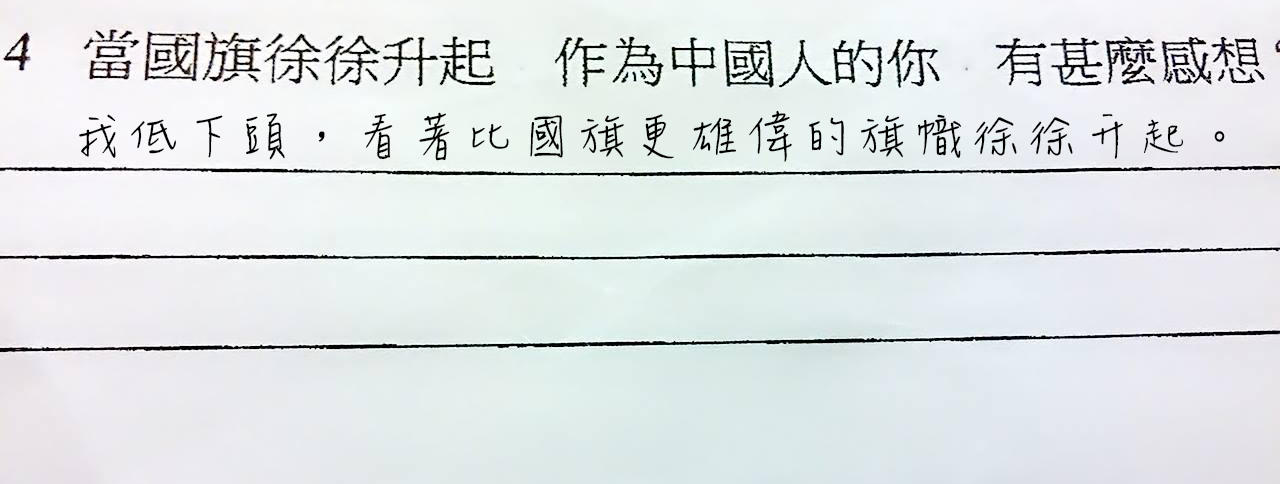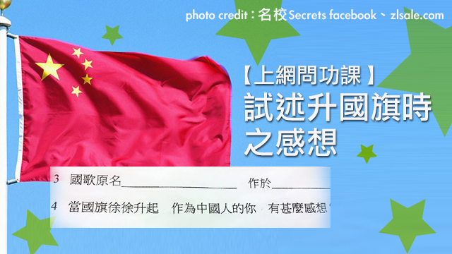 有同學仔就喺「名校Secrets」facebook(咩呀,唔係讀名校唔畀睇咩)問一條關於國民教育嘅問題,就係當國旗徐徐升起嘅時候,作為中國人嘅你,諗緊乜?