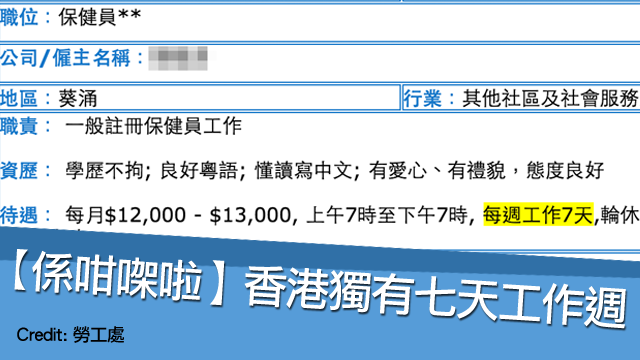前排個個都係咁講每週最低工時,好多地方每週工時都唔超50個鐘,而法國嘅打工仔就最爽,每個星期淨係返35個鐘!不過喺香港呢個咁繁華、咁進步嘅城市,返咁少實在係太懶,縱壞晒班廢青,所以香港嘅打工仔應該要日日返工、日日OT!好似呢份工咁,每週工作7天,咁啲打工仔咪可以好充實咁過每一日囉~