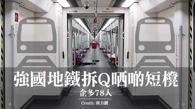 香港要同強國接軌,肯肯定就要學傚佢哋嘅做法啦!拆Q晒啲櫈,可以企多好多人呀,一定唔止78個,到時係可以上早幾班車㖭呀,而且冇晒啲櫈,就唔會再有關愛座嘅問題,廢青就唔使再見到櫈都唔敢坐喇!