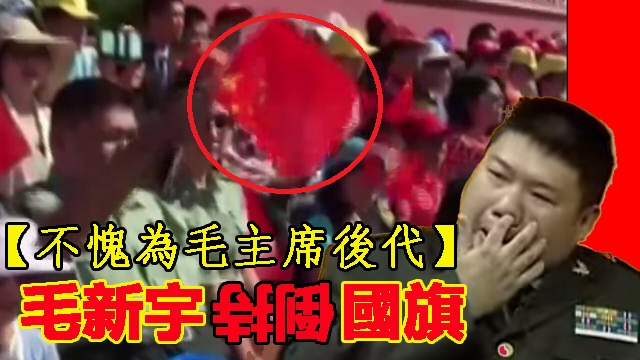 坐喺觀禮台嘅毛新宇心情大靚,一面跟住現場音樂大唱游擊隊之歌,一面揮國旗仔。不過呢,面國旗就,好似係,上下倒轉鳥。毛新宇作為中國第一智將,又點會咁智障連拎錯咗都唔知呢?毛毛諗,佢應該係心情太膠先,所以先至一時唔小心啫。