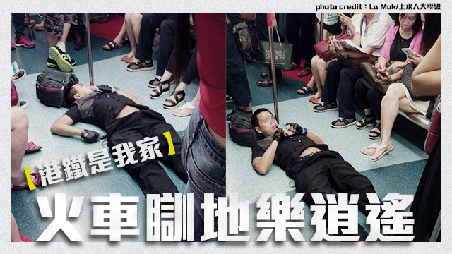 有網友喺火車見到個男人瞓咗喺火車車廂地下,神態自若,逍遙自得。係喎,其實冇位坐,咪瞓囉!咁咪唔怕畀人話你亂坐關愛座囉!
