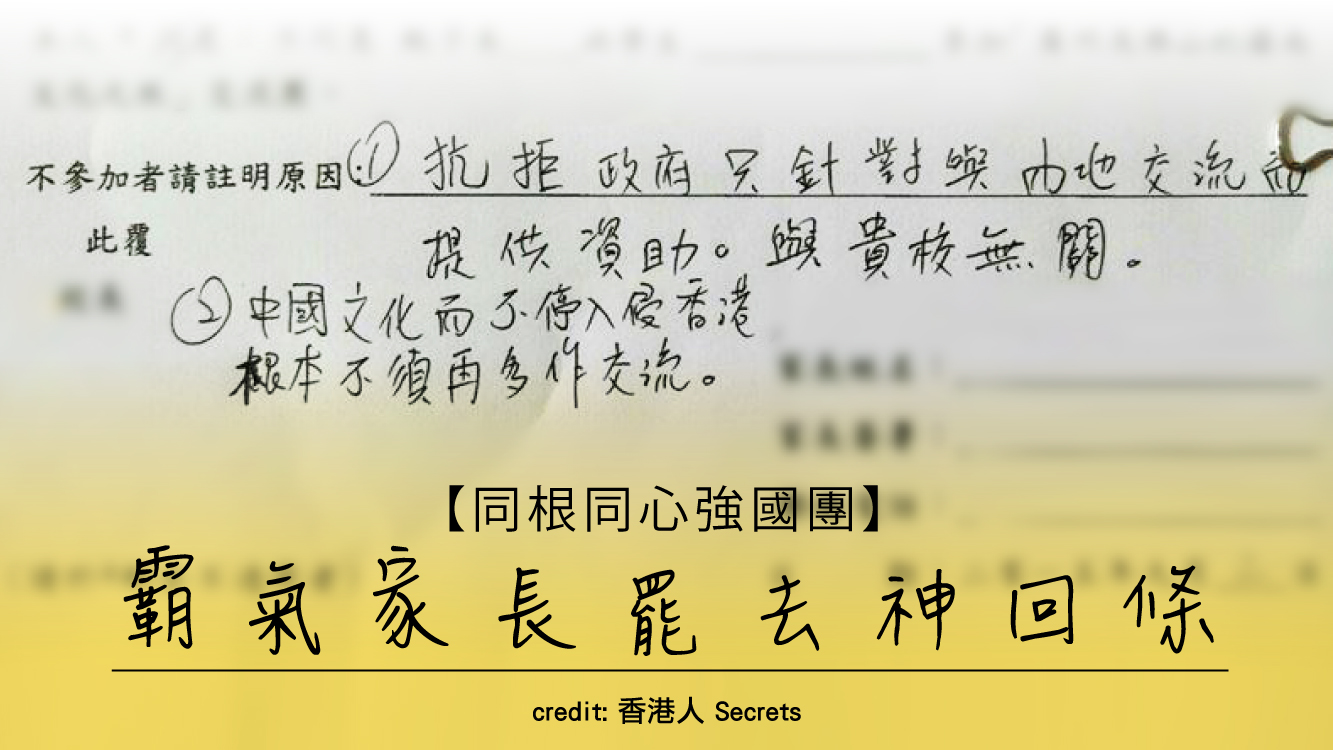 之前689就話香港嘅中小學雞應該要去多啲強國交流,了解一吓偉大嘅祖國有幾咁文明、幾咁發達!而家開咗學唔夠一個星期,已經有家長收到要求仔女去強國交流嘅通告,但呢個家長竟然話唔同意?