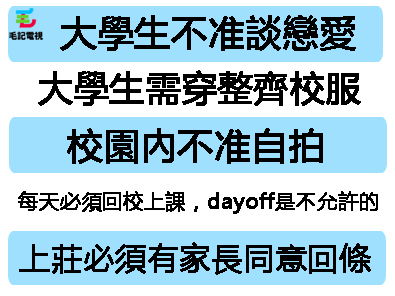 不過毛毛覺得呢啲規矩都依然唔能夠令到班廢青專心投入校園生活,最好就有埋下面呢幾條啦:
