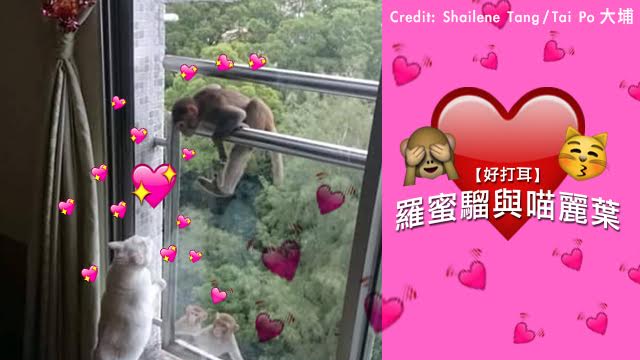 噚日一個住喺大埔嘅主人發現咗一段可歌可泣嘅愛情大悲劇呀! 一隻馬騮千里迢迢嚟搵呢隻白色貓貓,仲有兩個巴打陪佢?,就算畀塊玻璃隔住咗都阻擋唔到佢哋嘅熱情,呢個畫面仲感人過牛郎織女呀!