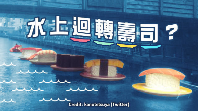 而家仲有個新玩法呀!有Twitter用戶喺大阪嘅道頓堀川發現到有幾件大大件嘅壽司喺度漂流,是咪水上迴轉壽司,轉到埋嚟就可以食㗎?