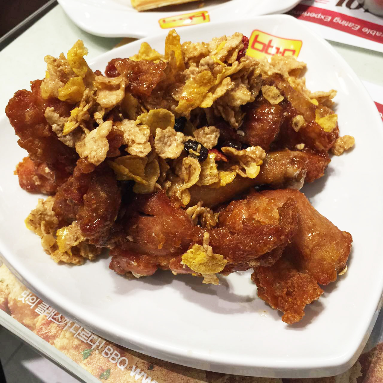 老老竇竇,啲炸雞嘅質感其實同KXC差唔多,不過個味道係幾特別嘅!仲要配埋啲粟米片一齊食,感覺即刻健康咗好多!(好似係)