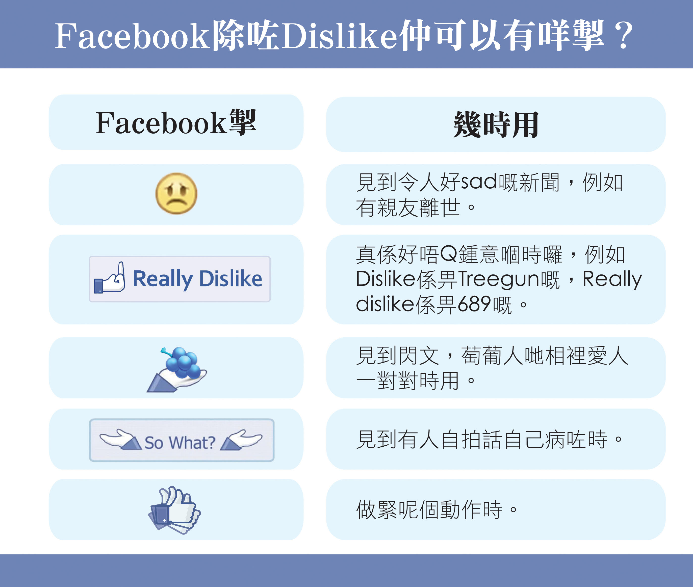 其實睇到張相或者status,又點會得like同dislike兩個反應咁簡單?毛毛碌咗飛碌咁多年,一路都好想佢出埋呢幾款掣!