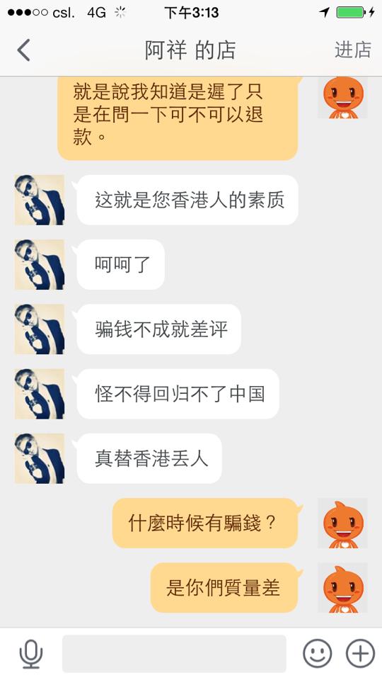 但其實嗰位網友當時根本未畀評價,係見個店主咁講嘢先嬲到畀差評囉!唔通個店主有預知能力嘅?!既然係咁,憤青店主話「怪不得回歸不了中國」,希望都會成真啦!