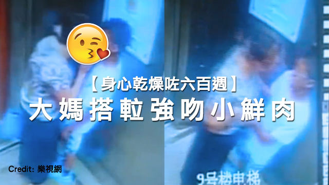 強國最近就有一條升降機內嘅CCTV片段喪畀網民瘋傳,片入面見到有個大媽一手拎住包包,一手托住個小鮮肉嘅下巴,然後將自己個嘴大大力咁印落個小鮮肉嘅雙唇度,真係睇到毛毛好滾動~