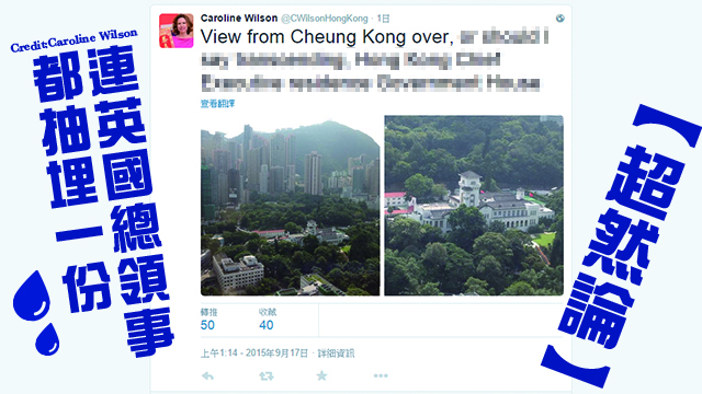 多得張曉明同志嘅超然論,呢幾日香港嘅相對濕度已經跌到去負數,而家連英國駐香港及澳門總領事吳若蘭都抽埋一份,真係抽到乾晒喇!
